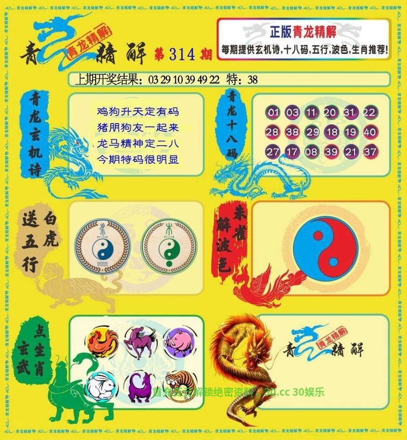 【正版青龙图精解】314期:鸡狗升天定有码,猪朋狗友一起来,龙马精神定二八,今期特码很明显